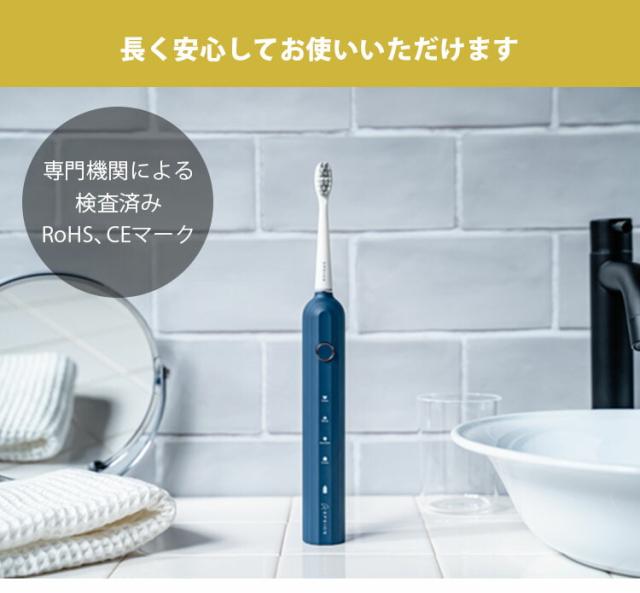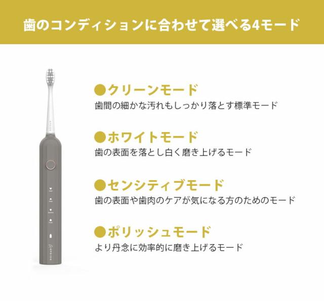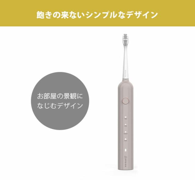 ![]() 音波技術により、毎分32,000回の高速振動が毛先の届かない歯間部までアプローチ。 手磨きのブラッシングに比べ、短時間で効率よくしっかり汚れを除去します。 ![]() 普通の歯ブラシ感覚で快適に使えます。 長時間の外出や旅行中でも、バッテリー切れの心配をすることなく気軽に持ち運べます。 ![]() 汎用性が高いUSB-C充電なので、パソコンなどから手軽に充電できるので便利です。 ![]() 洗面台が充電器だらけでゴチャゴチャになる心配がありません。 充電器を紛失した際もUSB-C充電器で給電できます。 ![]() デュポン社製W型ブラシ 柔らかで、高密度の毛先とW型のブラシを採用。 材質には吸水性が低く、細菌繁殖しにくいデュポン社製ナイロンを使用。 ![]() ブラシの押し付ける力が大きすぎると、自動的に振動力を低減する押し付け防止機能が歯と歯茎を保護します。 歯茎が弱い方でもやさしく磨くことができるので、安心してお使いいただけます。 ![]() 電動歯ブラシ特有の騒音が大幅削減。 気になる振動音がわずか55dB以下と抑えられているので、ご家族が寝静まった深夜や、早朝など時間を問わずに、気持ちよくブラッシングできます。 ![]() あたりまえのようで今まで無かった防水機能。 一時的に水没しても、浸水することのないIPX7防水設計を採用。 お風呂でも安心してご使用できるので、リラックスタイム中のブラッシングで時間を有効活用できます。 また、本体を水洗いすることができるので、いつでも清潔な状態を保てます。 ![]() 本製品には、歯間の細かな汚れもしっかり落とす標準の「クリーンモード」 歯の表面を落とし白く磨き上げる「ホワイトモード」 歯の表面や歯肉のケアが気になる方のための「センシティブモード」 より丹念に効率的に磨き上げる「ポリッシュモード」 の4つのモードを搭載。 歯のコンディションに合わせて。モードを自由にお選びいただけます。 ![]() 30秒ごとに0.5秒停止し、専門家が推奨する歯磨き時間である「2分」が経つと運転を終了するスマートタイマーを搭載。 ![]() 本製品は専門機関による検査済みです。 毎日使うものだから、IPX7をはじめ、EU基準によるRoHS、安瀬性能基準を満たすことの証明であるCEマークを表示できる証明を専門機関から得ています。長く安心して毎日のオーラルケアを行っていただけます。 ![]() インテリアの統一感を損なうことがありません。 パッケージもこだわり、スタイリッシュなボックスなので、贈る方も、もらう方もうれしい特別なギフトとなることでしょう。 |