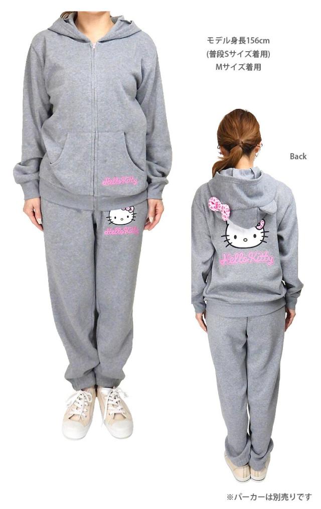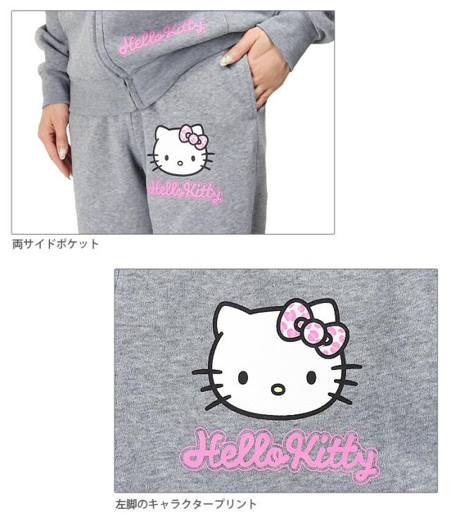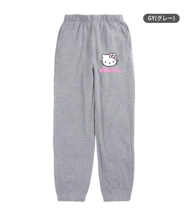 ハローキティ 裏起毛 スウェット パンツ レディース 秋冬 M L グレー SAN-1884 HELLO KITTY スエット 長ズボン ウエストゴム パジャマ トレーニング ジム 女性 婦人 Sanrio サンリオ キャラクター ロゴ 杢グレー 送料無料 3151