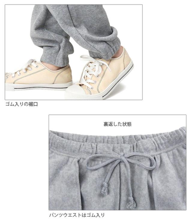 普段使用にも便利な紐入りロングパンツ ジョガーパンツ 10分丈 シンプル 裏シャギー 無地 あったか 暖かい 温かい キティちゃん GY