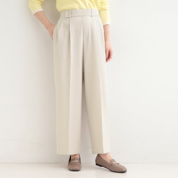 センタープレスとワンタックで脚長に見せるきれいめパンツ。
