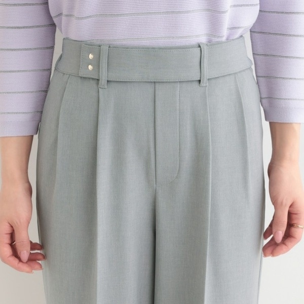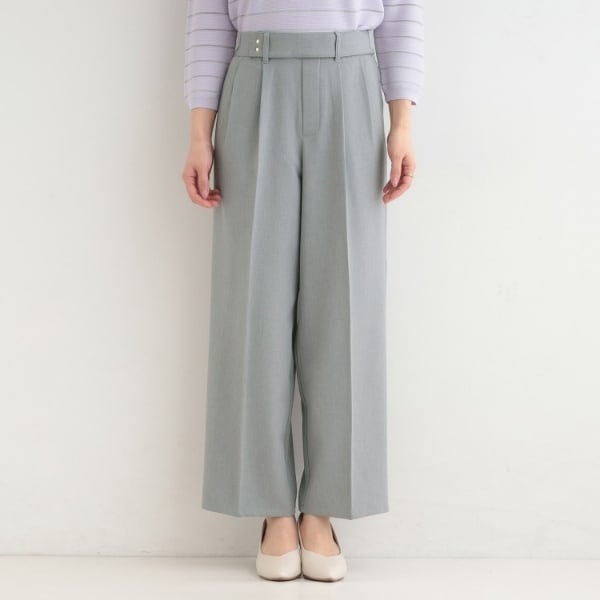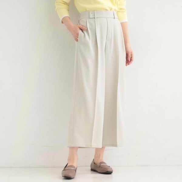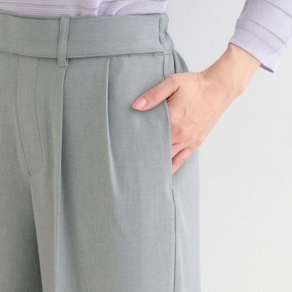 程よいゆとりのワイドシルエットで腰回りをカバーしつつ、細めのベルトループでバランス調整が可能。