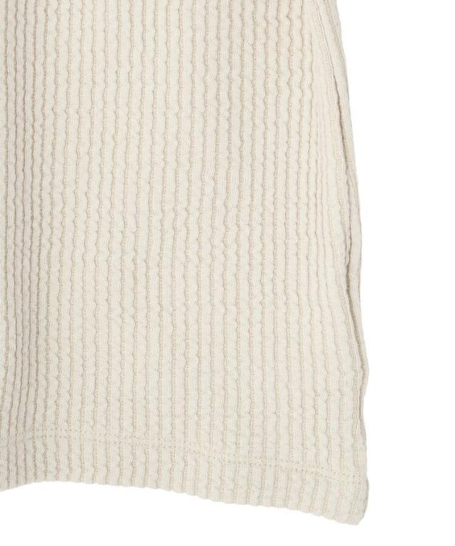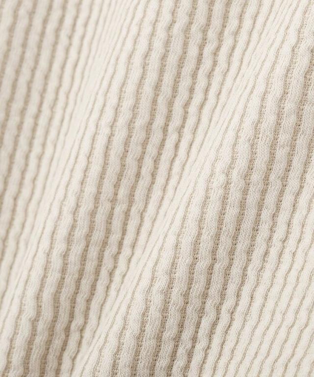 さりげなく目を引くアシンメトリーな釦デザインが魅力のテレコカットソーです。デコルテをきれいに見せるネックラインと、ツイストのニュアンスが女性らしいやわらかさを演出します。伸縮性のあるテレコ素材で、体にほどよくフィットしながらも締め付け感が少なく、快適な着心地です。一枚で着てもサマになり、ジャケットやカーディガンのインナーとしても活躍します。シンプルながらデザイン性があるので、きれいめカジュアルからフェミニンなコーデまで幅広く対応します。季節の変わり目にも取り入れやすく、着回し力の高いトップスです。