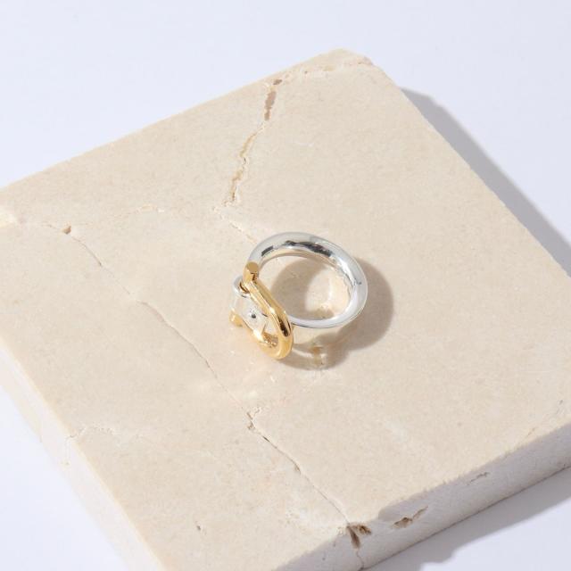 ・シンプルながらも目を引く、バイカラーデザインのリング。