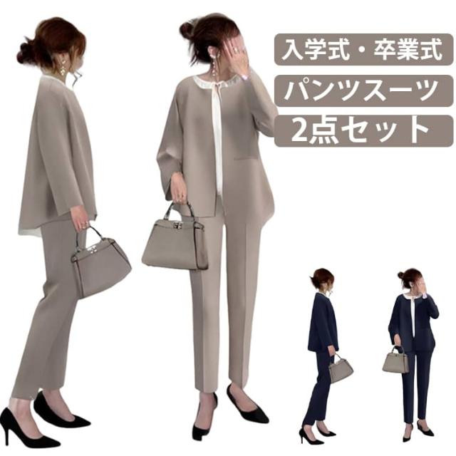 おしゃれ 40代 母 入学式 フォーマルスーツ ママ 30代 セレモニースーツ 洗える パンツスーツ 服装 卒業式 50代 レディース ノーカラー テーパードパンツ セットアップ レディーススーツ 2点セット ママスーツ セレモニースーツ フォーマル スーツ 春 秋