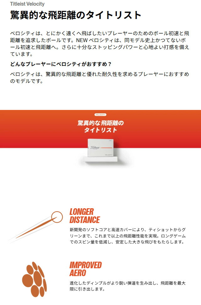 ベロシティは、驚異的な飛距離と優れた耐久性を求めるプレーヤーにおすすめのモデルです。