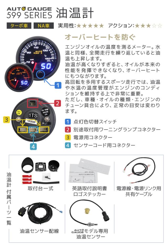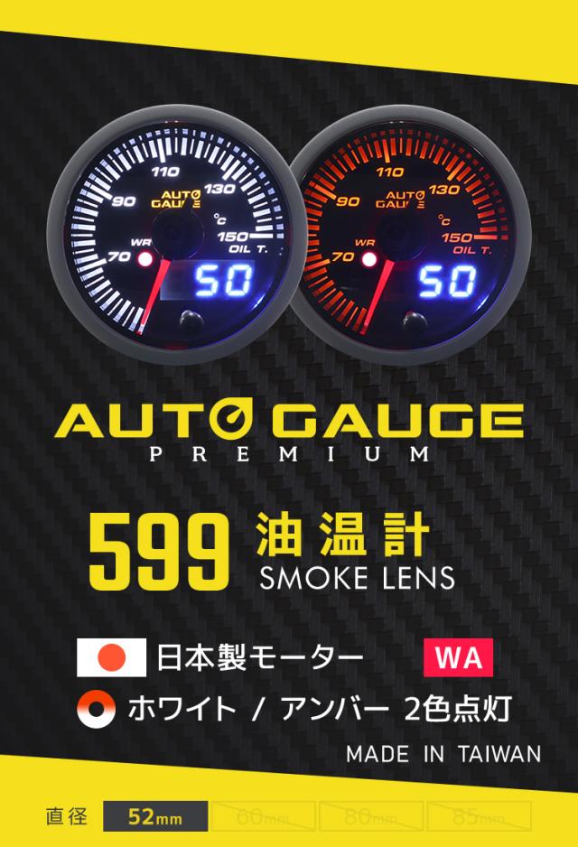 油温計 オートゲージ 52mm 599シリーズ AUTO GAUGE 追加メーター 後付け 車 防水コネクター デジタルディスプレイ スモークレンズ ホワイト LED 油温 送料無料