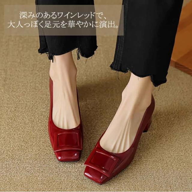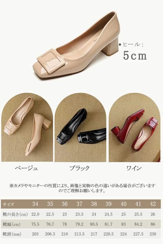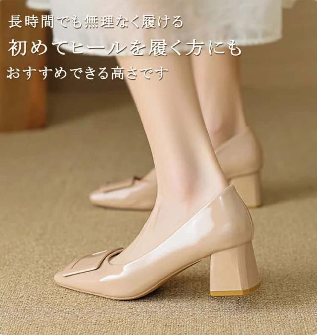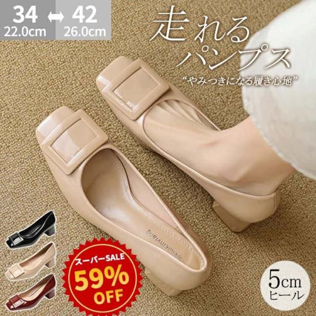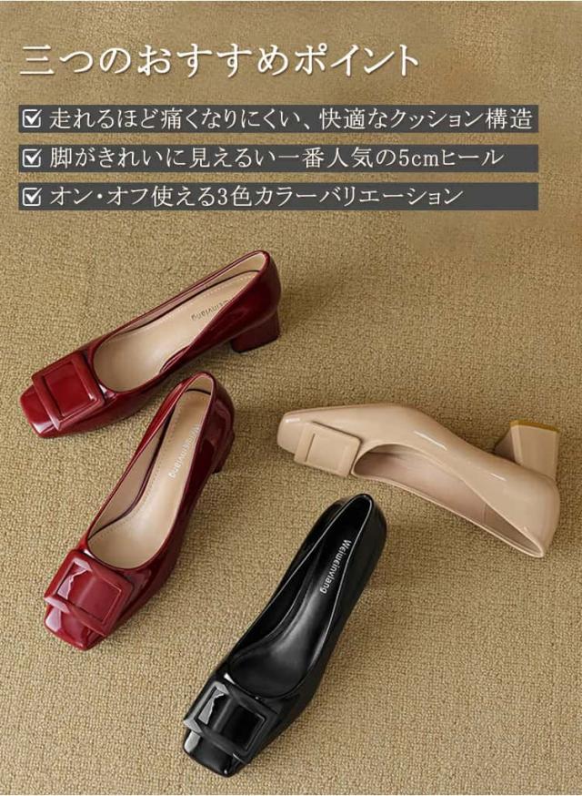 | パンプス 走れるパンプス靴 痛くないチャンキーヒール フラットシューズ バックルモチーフ スクエアトゥ 5センチヒール 太ヒール 歩きやすい レディース 22.5 25.0 入学式 卒業式 卒園式結婚式仕事通勤 美脚 柔らか 脱げない 婦人靴疲れない |