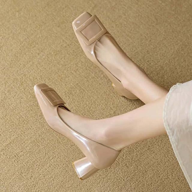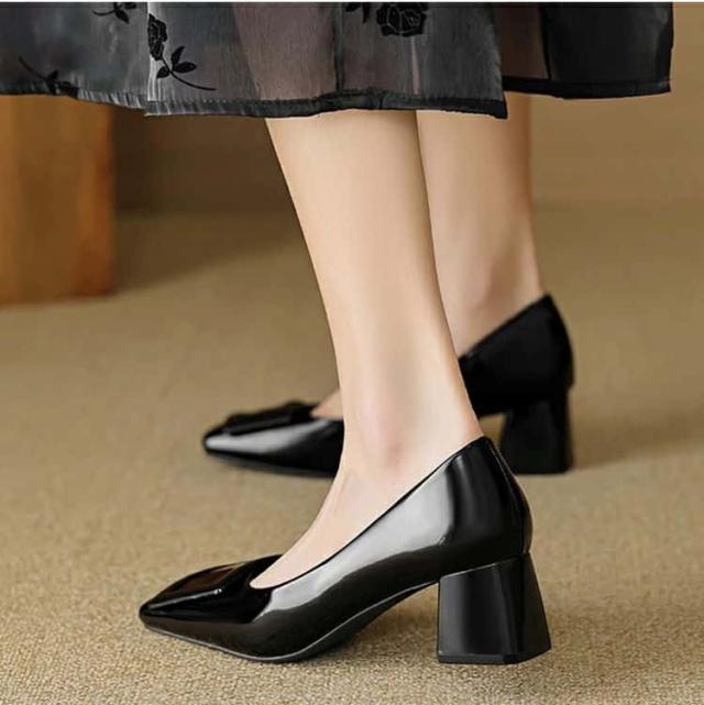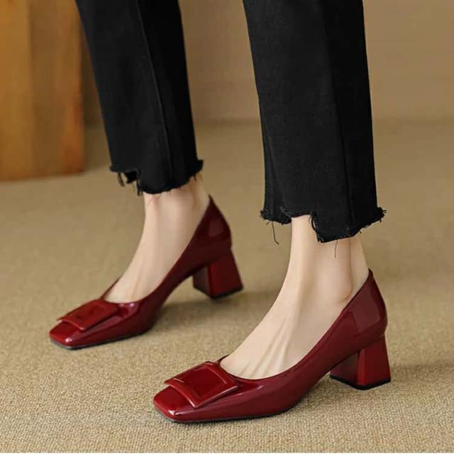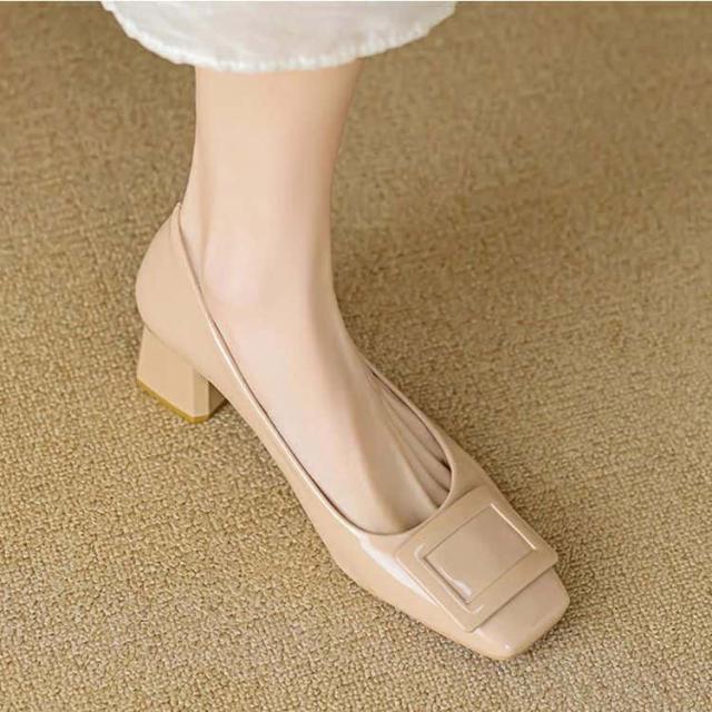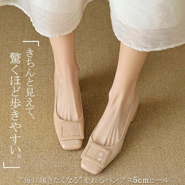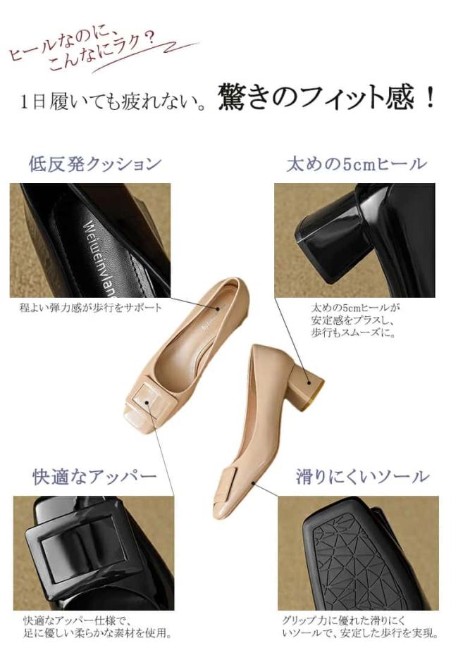 パンプス 走れるパンプス靴 痛くないチャンキーヒール フラットシューズ バックルモチーフ スクエアトゥ 5センチヒール 太ヒール歩きやすい レディース 入学式 卒業式結婚式仕事通勤 美脚 柔らか 脱げない 婦人靴疲れない