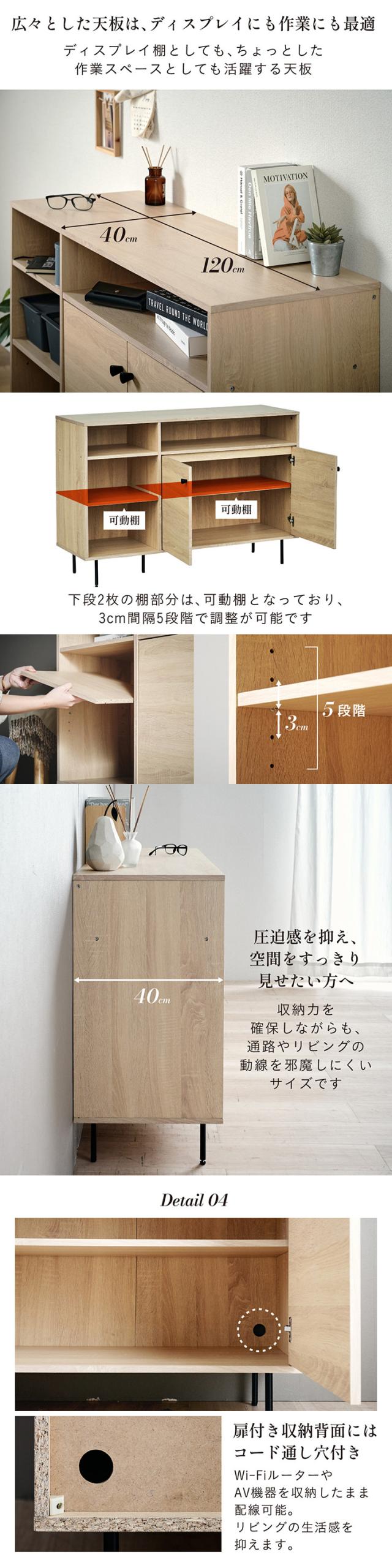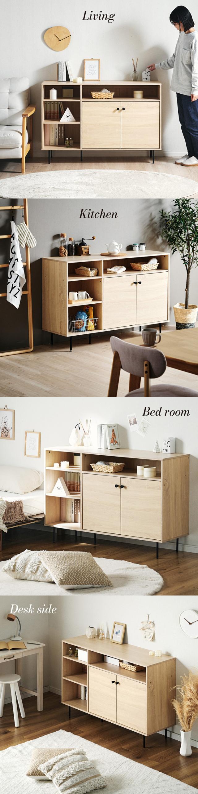 サイドボード キャビネット リビング収納 コンソール 収納棚 リビングボード 扉付き収納 オープンラック 木製収納 北欧 おしゃれ ディスプレイ収納 AV収納 ルーター収納 ナチュラル Tio ティオ 幅120cm