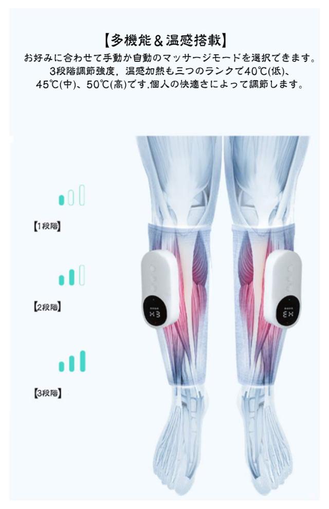 3段強さ調整 ふくらはぎケア 3段温熱機能 多機能マッサージ機 太もも 足 コードレス フットマッサージャー 片足タイプ 気圧 ふくらはぎ タイマー機能 ワイヤレス使用 足先マッサージ器 レッグマッサージ 家庭用 敬老の日 お歳暮 ギフト