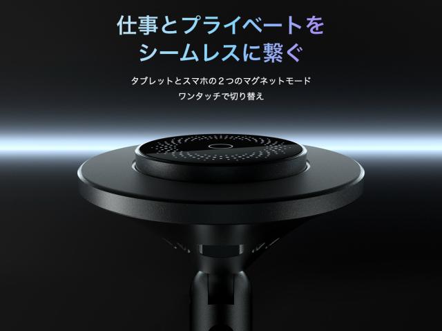 付属のマグネットリングをタブレットの背面に取り付けると、すべてのタブレットに対応するマグネット式スタンドになります。MagSafeワイヤレス充電対応のスマートフォンスタンドとしても機能し、iPhoneデバイスを急速充電できます。この多用途のマグネット式iPadスタンドは、全く新しいマルチデバイス体験を提供します。