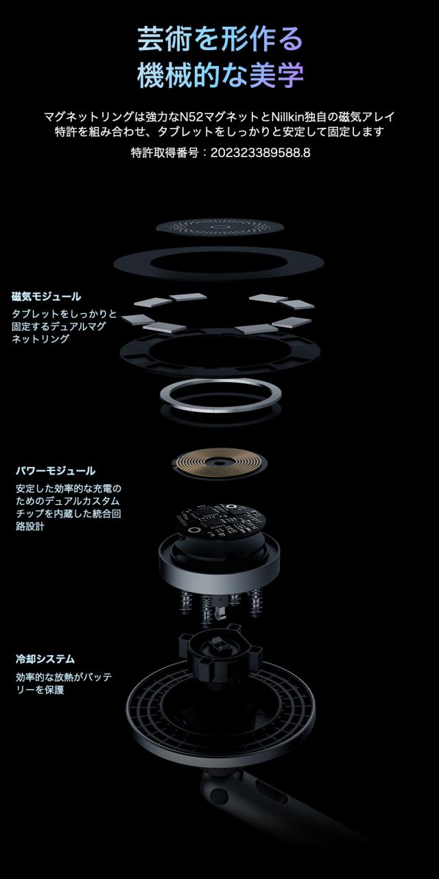 付属のマグネットリングをiPadの背面に取り付ける際は、説明書をよく読んでください。マグネットリングは強力なN52マグネットとNillkin独自の磁気アレイ特許を組み合わせ、タブレットをしっかりと安定して固定します。充電モジュールは純正MagSafeの寸法に合わせて設計されているため、ほとんどのマグネットケースに対応しています。5mmのポップアップ高さで、携帯電話のカメラレンズを傷から効果的に保護します。