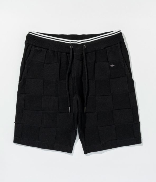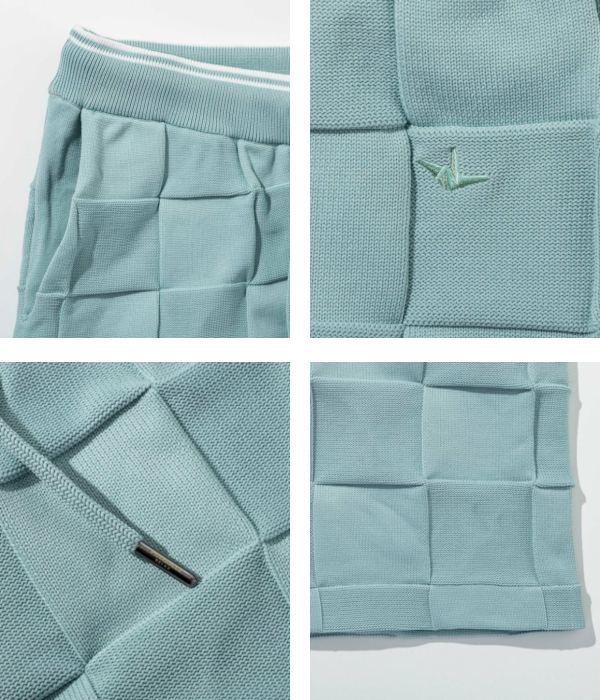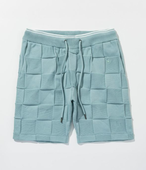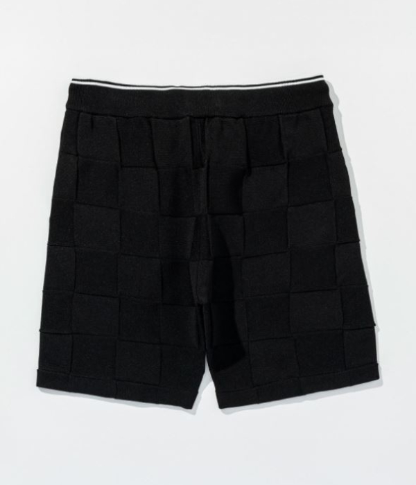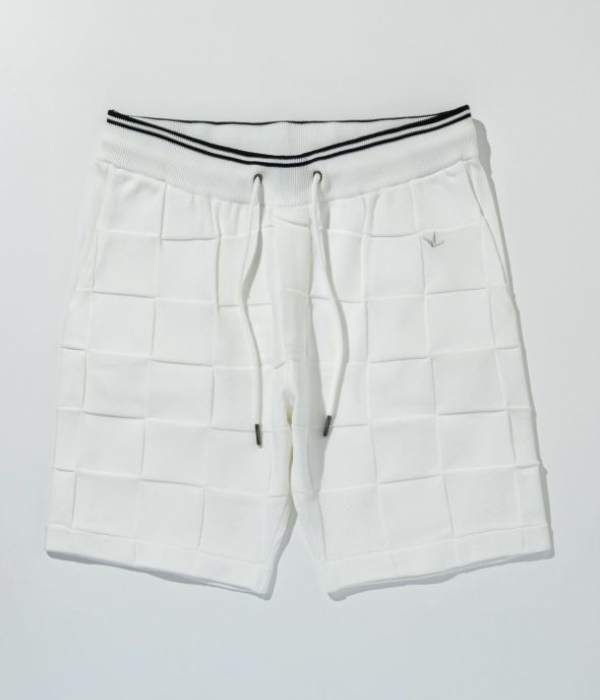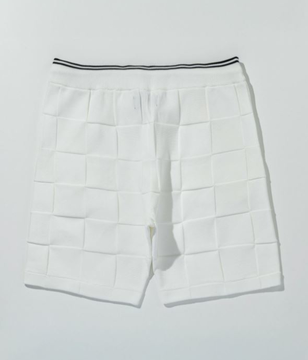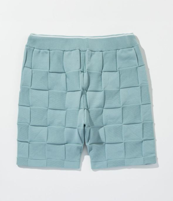 編み込んだような立体的なブロックデザインがクラス感を漂わせる、オリジナルテキスタイルで仕立てたショートパンツ。