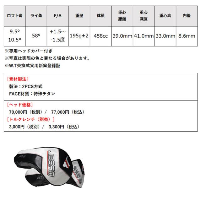 | ●肉厚調整&新素材フェイスによる最大限スイートエリアを拡大。 ●JBEAM史上最大の大型ヘッド ●肉厚、重心のバランスを整え、極限まで曲がらないヘッド構造 ●クラウンをカーボンにすることにより安定した高弾道を実現。 ●新素材フェイスと独自の設計でより高速化へ。 ●初期重量195g前後の軽量モデル ●易しさを重視。誰もが使える万能型ヘッド。 ●癖の少なさがシャフト選びを自由に。 ●オフセンターヒットに強く、トータル飛距離が落ちづらい。 |