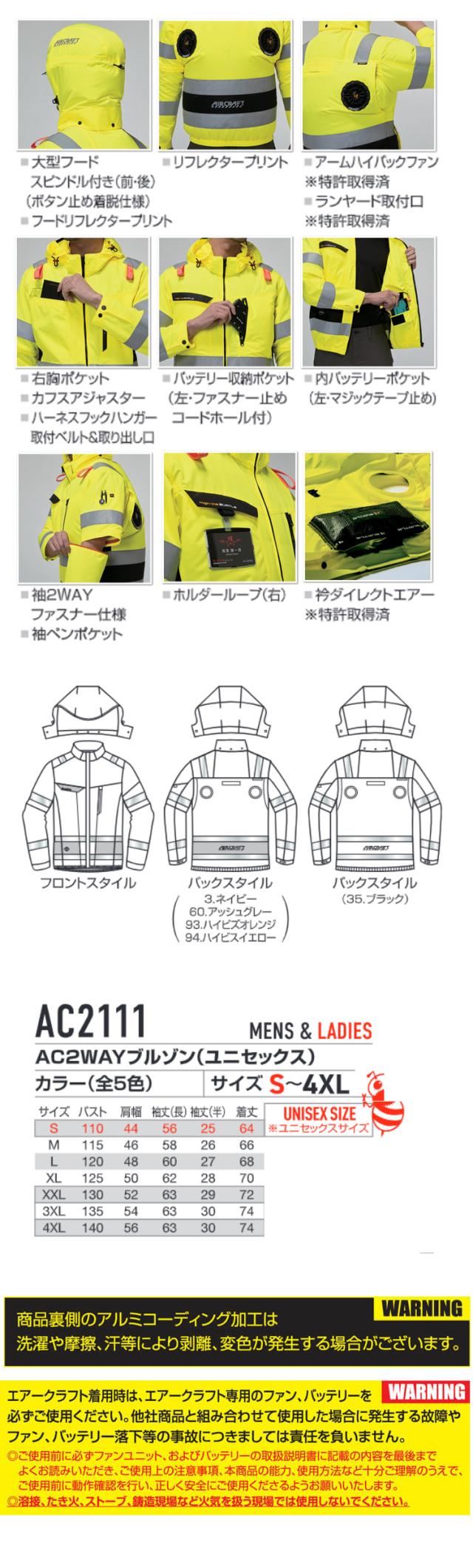 [予約]バートル BURTLE エアークラフト 2WAYブルゾン(ファンなし) AC2111 ハイバック 高視認 AIRCRAFT 2026年春夏新作