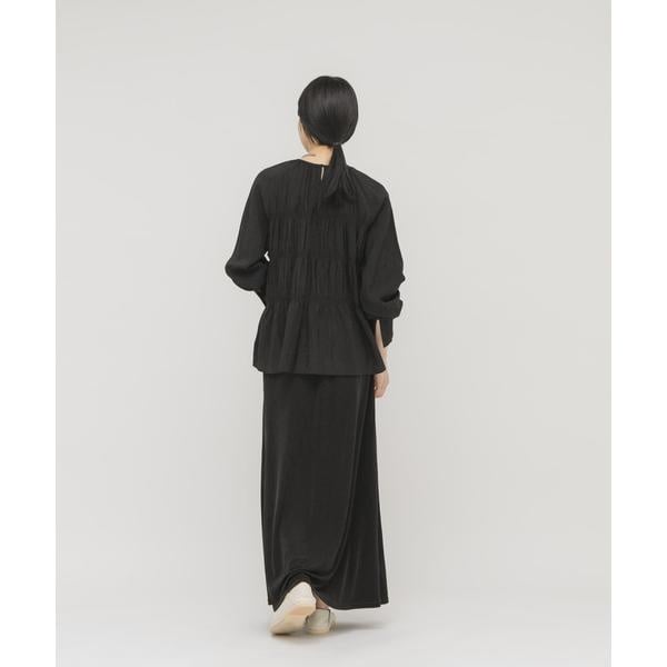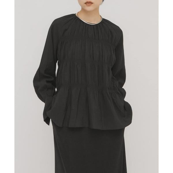 ティアードデザインが女性らしく、存在感を放つブラウス。少し表面感のある素材を使用しており、程よくハリはありつつも肌に馴染む素材で柔らかな雰囲気に仕上げました。ベーシックなIVORYとBLACK、春にぴったりなPINKをご用意しました。