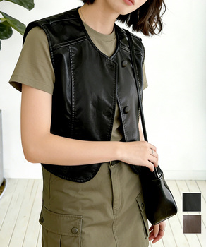 フェイクレザーベストレディースジレ 送料無料 即日発送