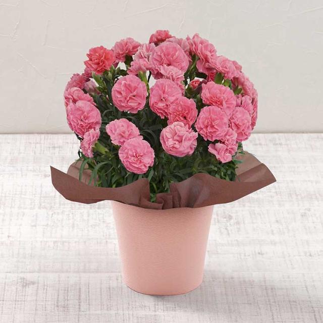 カーネーション「ももりーな」(5号)、 鉢カバー(樹脂製) 、ラッピング