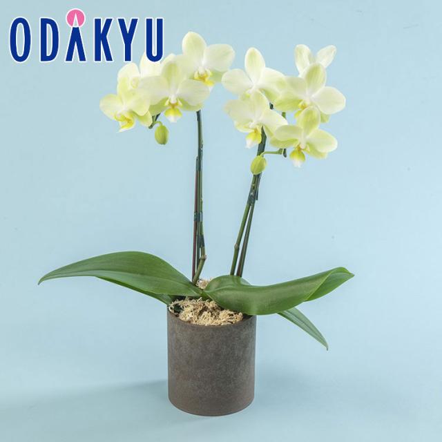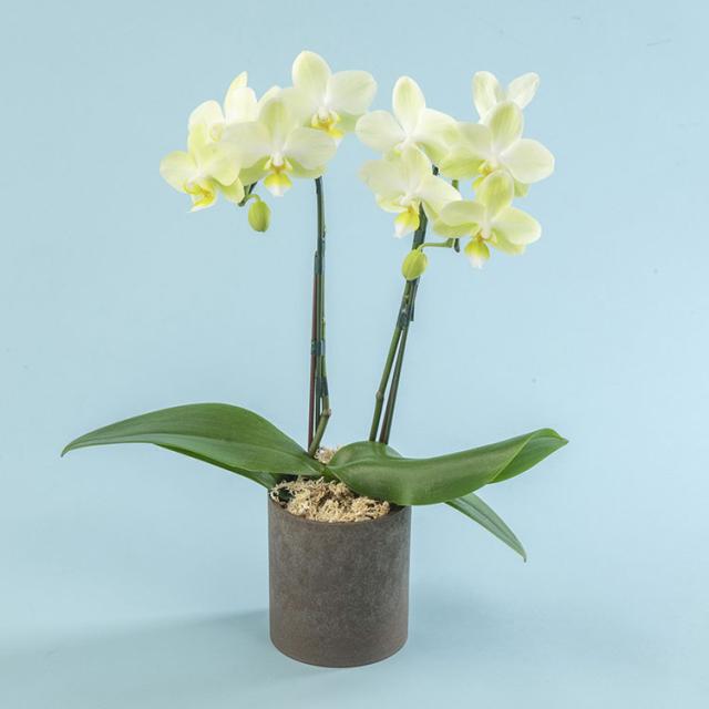 ミディ胡蝶蘭「イエロー系」2本立ち、樹脂製鉢