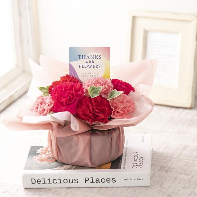 カーネーションのピンクのグラデーションにメッセージピックがアクセント。