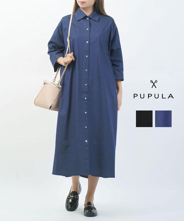 ププラ コットンミックストリコット 5分袖 フロントボタン ワンピース PUPULA 161009 国内正規品 2026春夏新作 送料無料