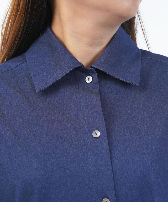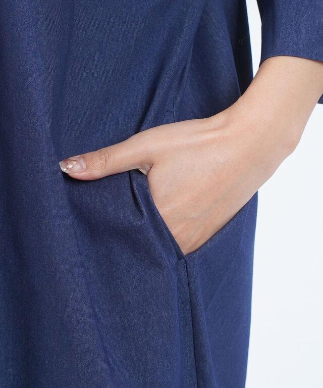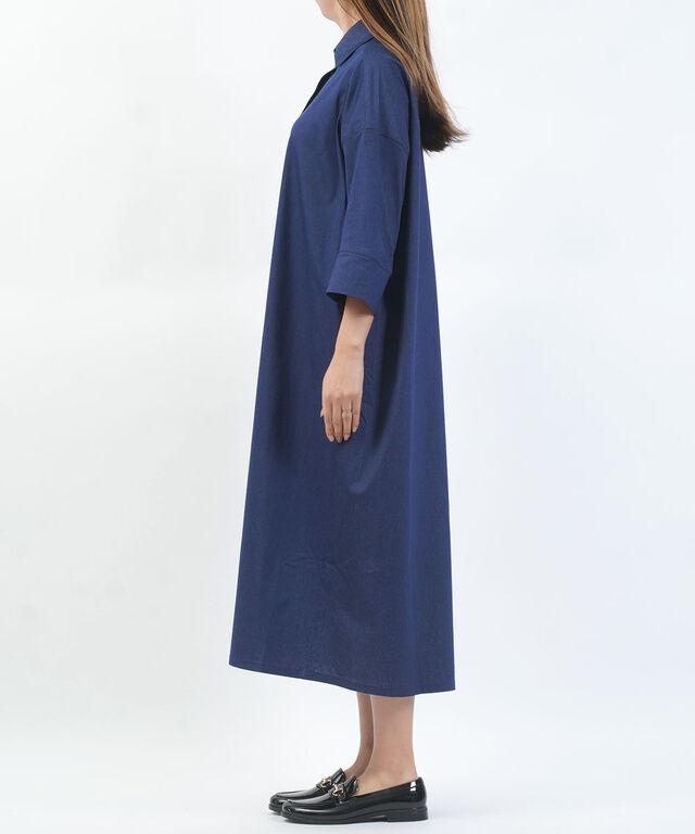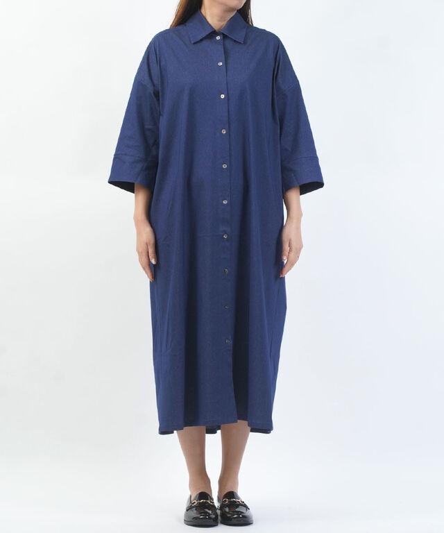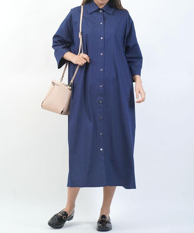 日差しが気になる季節にも安心な、五分袖デザインのシャツワンピースです。