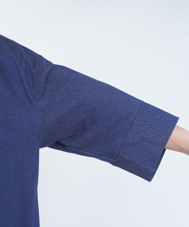 身頃には程よくゆとりを持たせ、二の腕をカバーしつつも長すぎない袖丈が、