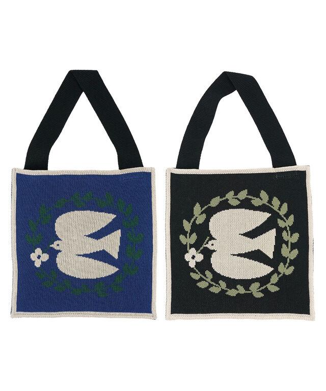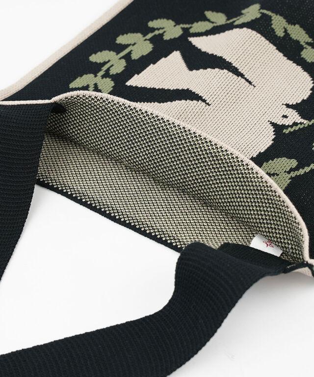 綿糸で度詰めに編み立てた、ジャガード柄のニットショルダーバッグです。