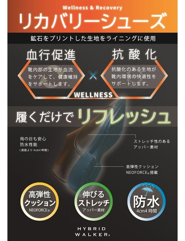 ビジネスシューズ メンズ 革靴 ブラック 黒 ブラウン 茶色 防水 雨 軽量 軽い 血行促進 屈曲 クッション 歩きやすい 履きやすい 疲れにくい リカバリー 高反発 ストレートチップ ローファー プレーントゥ ハイブリッドウォーカー HYBRID WALKER HW2500 HW2501 HW2502