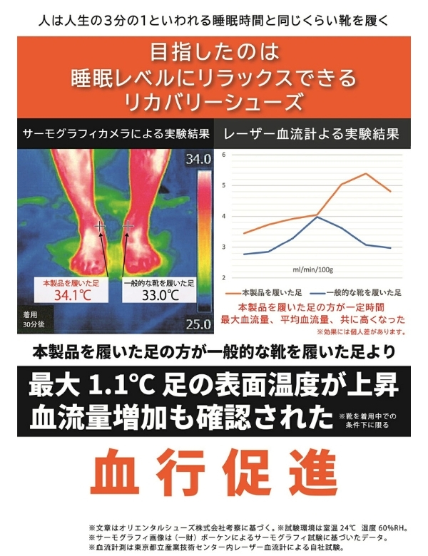 靴内部の生地が血流をケアして健康維持をサポートします。