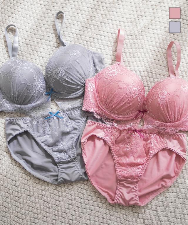 大きいサイズ/レディース/D85/D90/D95/E85/E90/E95/F85/F90/F95/G85/G90/G95/クラシカルレース配色リボンブラジャー&ショーツセット