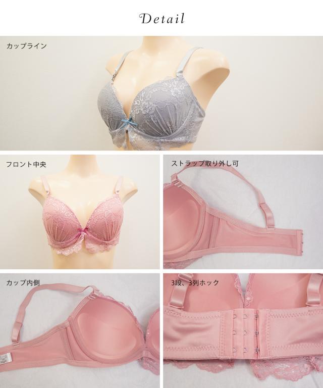 | 【カップタイプ】3/4カップ・モールドカップ(丸みを形成した厚みのあるカップです)、【ホックの数】3段3列、【パット付属】なし、【パットポケット】なし、【ストラップ取外し】可、【ワイヤー】あり、※タンブル乾燥禁止 |