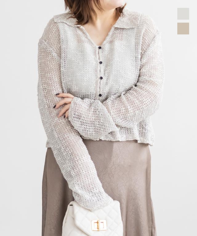 大きいサイズ/レディース/3L/4L/襟付きシアーカーディガン