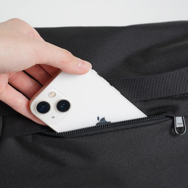 背面にもファスナーポケットが付いているので、携帯などを入れておけばサッと取り出せて便利です。