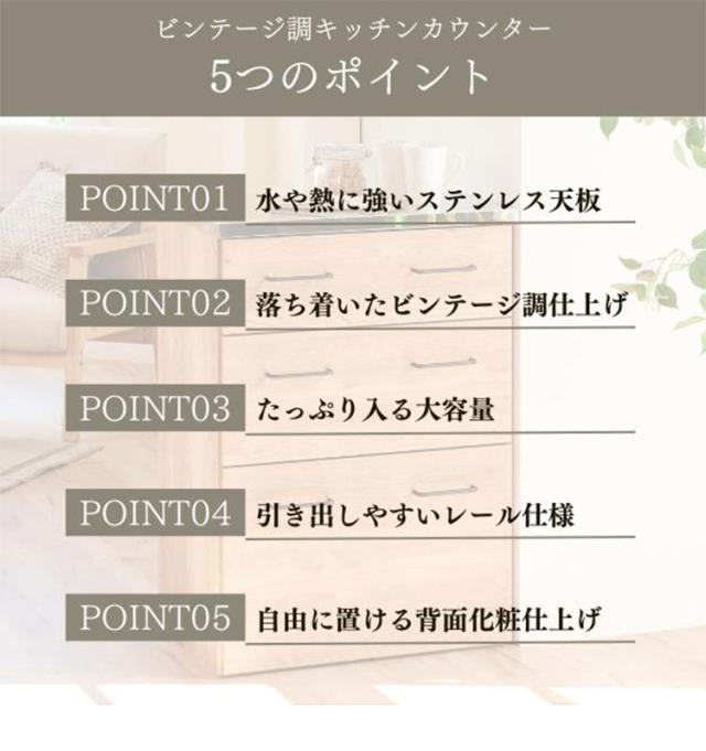 日本製 ステンレス キッチンカウンター ヴィンテージ調 60cm 北欧 おしゃれ かわいい 収納 ステンレスゴミ箱 上ラック レンジラック ダスト ボックスレンジ 日本製 開梱設置【送料無料】