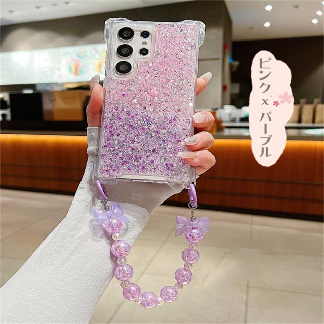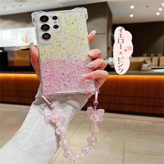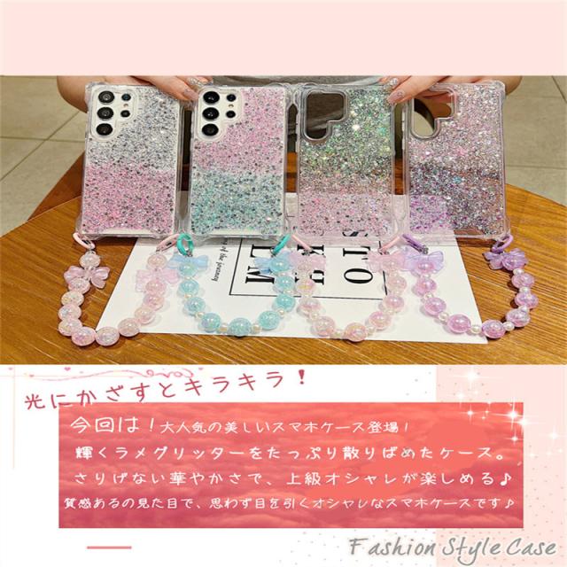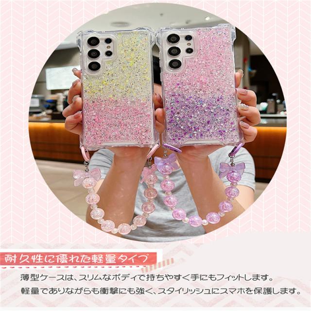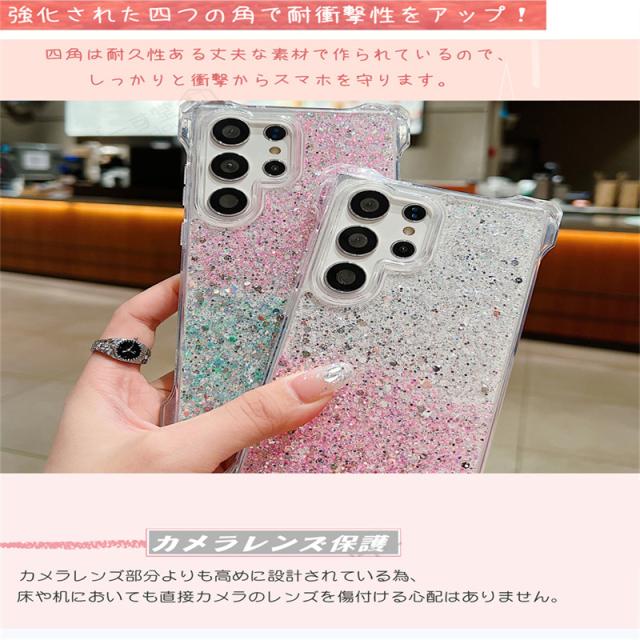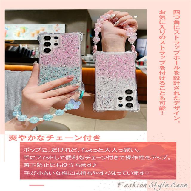 galaxy s26 5g ケース 4つストラップ穴 スマホケース Galaxy S26Ultra S26+ Plus S25 S24FE S23FE S24ウルトラ S22ultra 5Gケース チェーン付き 携帯ケース キラキラ グリッター 耐衝撃 ギャラクシーS26ケース ストラップ付き クリアケース 韓国 ラメ 可愛い 女子 キャンディ