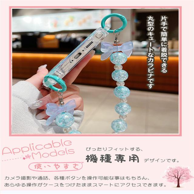 〇 人気の秘密は、クリアな本体と、グリッターのカラーを組み合わせたチェーン付きのスマホケースです。