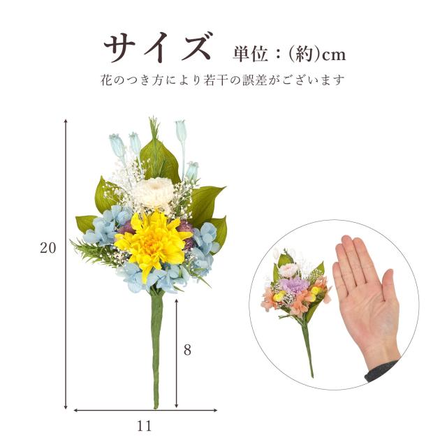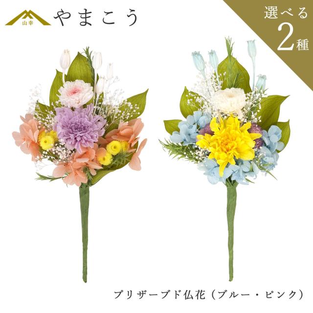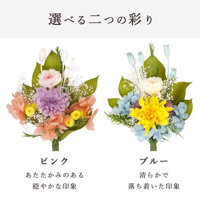 仏花 一対 ミニ プリザーブド仏花 お供え 花束 仏壇用 モダン ブルー ピンク 選べる2色 コンパクト 高さ20cm 手元供養 水替え不要 仏具