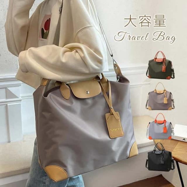 ボストンバッグ レディース 大容量 2way ショルダーバッグ 斜めかけ 肩掛け ナイロン 配色 フェイクレザー ビッグサイズ 修学旅行 合成皮革 合皮 アウトドア 旅行鞄 バック カジュアル 大人 女子 おしゃれ トラベルバッグ 可愛い