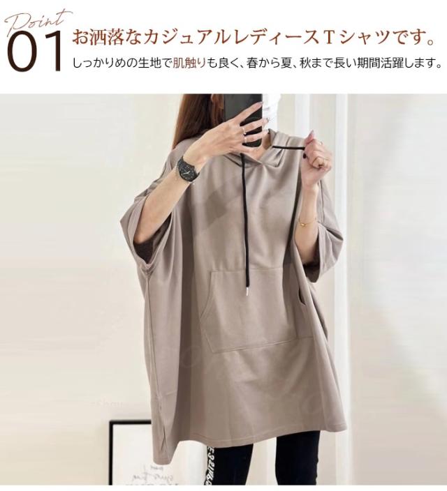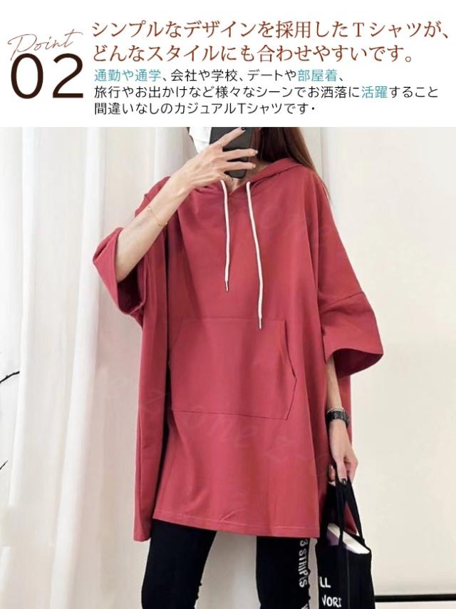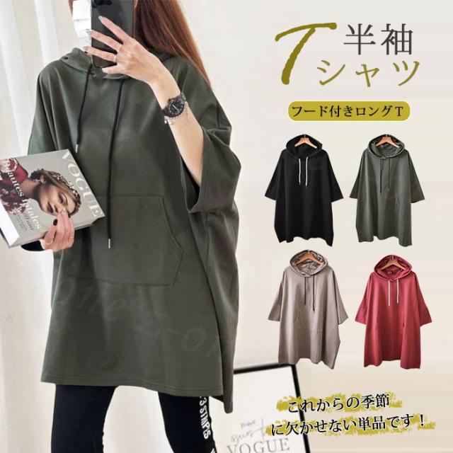 【1点1,250円!2点購入&クーポンで】Tシャツ 半袖 レディース 半袖 tシャツ パーカー フード付き ロングtシャツ 春新作 送料無料 大きいサイズ ゆったり チュニックtシャツ ビックtシャツ 春夏 フーディー 五分袖 カットソー アシンメトリー ホワイトデー 卒業式