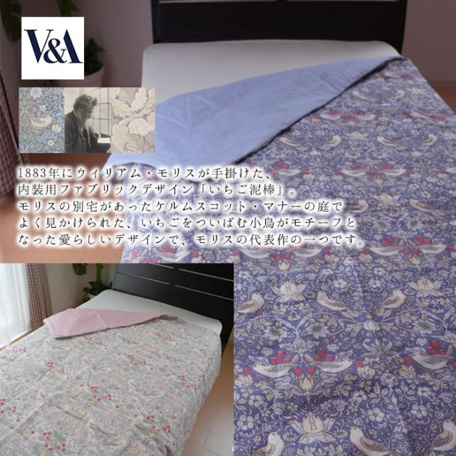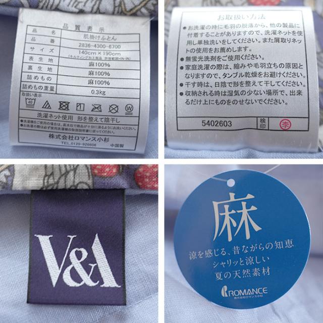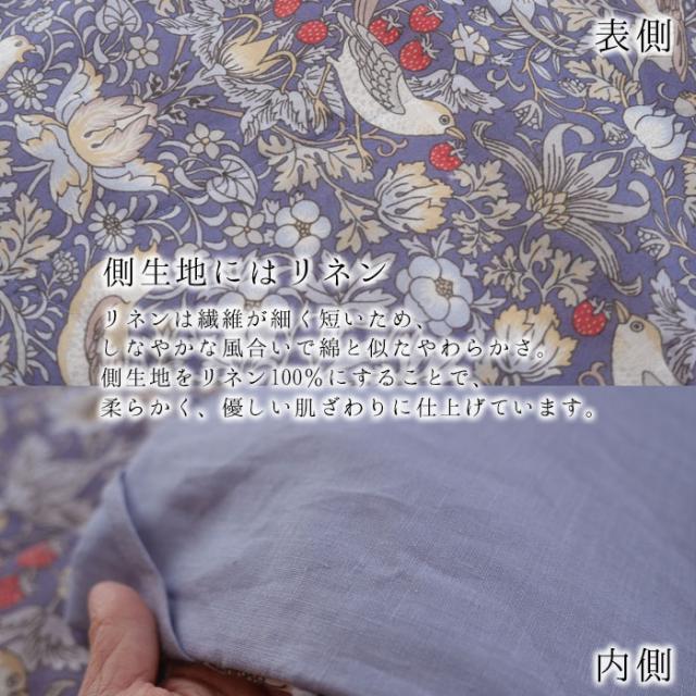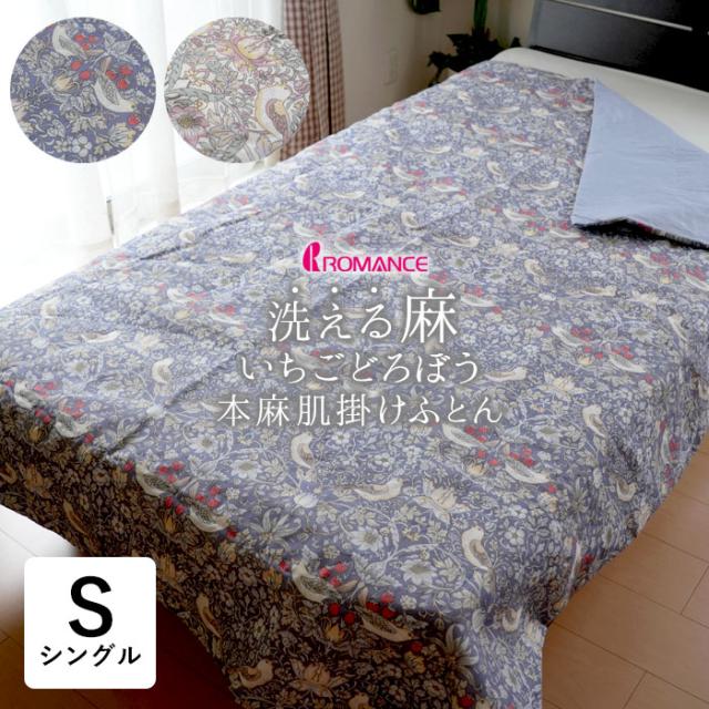 本麻肌掛けふとん オール麻 肌掛けふとん シングル 140×190cm いちご泥棒柄 洗える ウイリアムモリス V&A ロマンス小杉 母の日 贈り物 ふとん 布団