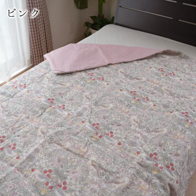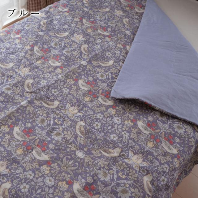 本麻肌掛けふとん オール麻 肌掛けふとん シングル 140×190cm いちご泥棒柄 洗える ウイリアムモリス ロマンス小杉 2836-4300