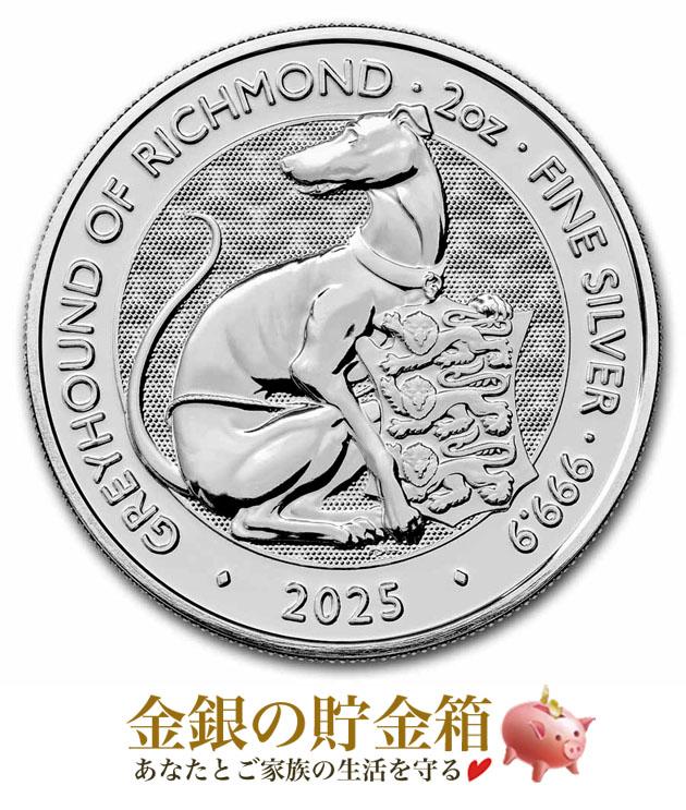 英国 ロイヤルチューダービースト グレイハウンド銀貨 2オンス 2025年製 クリアケース入り 純銀 コイン イギリス王立造幣局発行