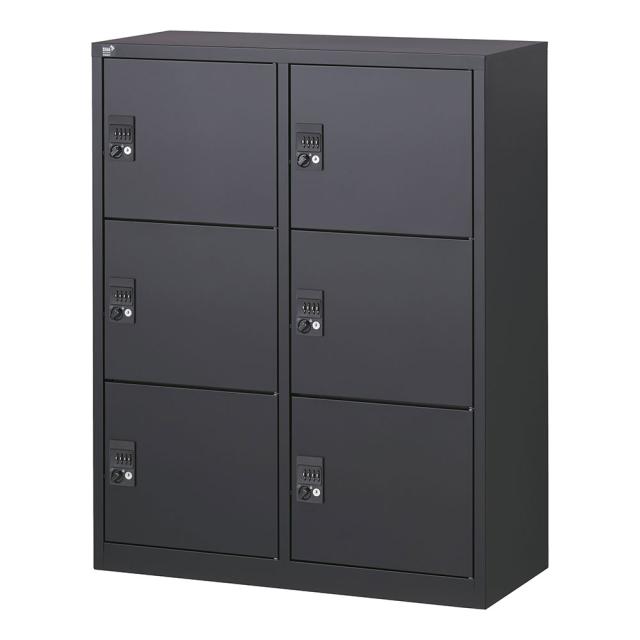 『代引不可』ロッカー 6人用 ミニ 6扉 ダイヤル錠 鍵付 H1110mm ブラック ALZK-PL34-6 スチールロッカー 貴重品 完成品 生興『送料無料(一部地域除く)』