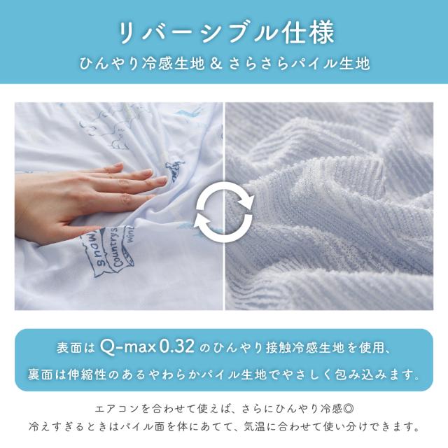 接触冷感おなかケット 約100×135cm ハーフケット 表は接触冷感 裏はパイル生地 リバーシブル仕様 薄手 動物柄