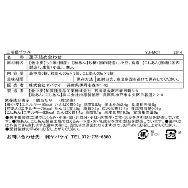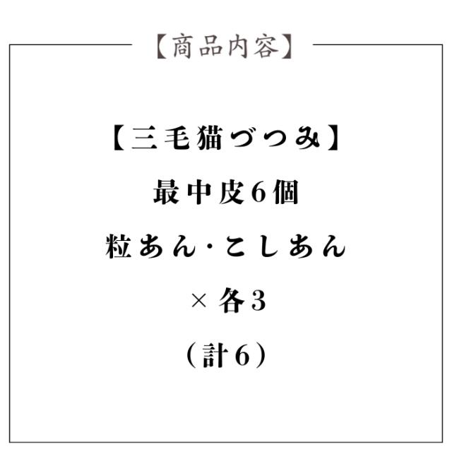 <内容量>三毛猫づつみ(最中皮6個、粒あん・こしあん×各3)(計6)