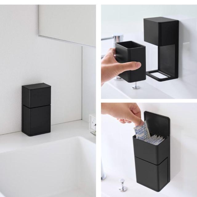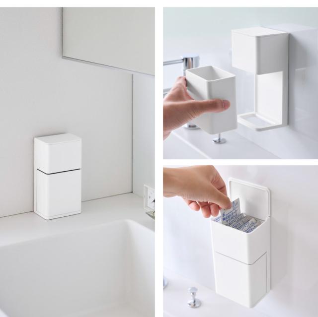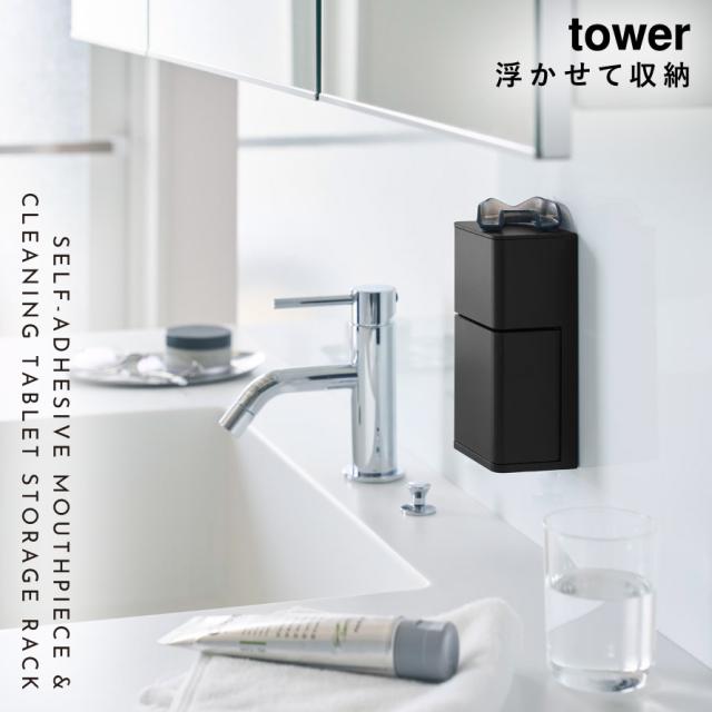 洗面所 収納,洗面台 収納,洗面所 ラック,マウスピース,部分入れ歯,入れ歯,洗浄タブレット,つけ置き,一時置き,収納ラック,収納,ラック,フィルムフック,貼ってはがせる,壁,壁面,壁付け,浮かす,浮かせる,浮かせる収納,空中収納,洗面,洗面台,洗面所,洗面室,tower,タワー,TOWER,タワーシリーズ,ホワイト,白,ブラック,黒,モノトーン,
