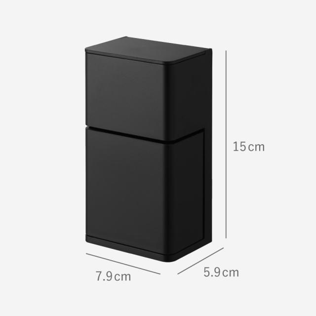 ■サイズ:本体/幅7.9×奥行5.9×高さ15cm(フィルムフック含まず)、蓋開口時/高さ19.9cm、容器/幅7.9×奥行4.8×高さ8.4cm、フィルムフック接着面/幅6×高さ6cm