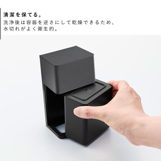 容器は取り外し可能で、つけ置き洗いにも対応。洗浄後は容器を逆さにして乾燥できるため、水切れがよく、衛生的にお使いいただけます。
