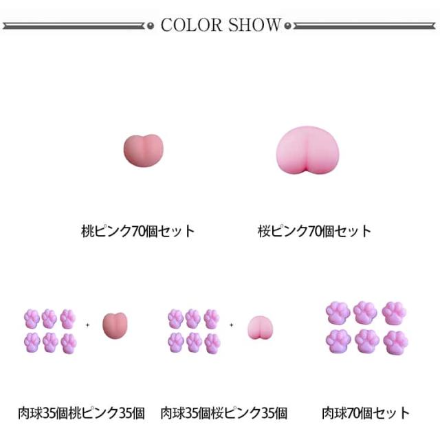| 色 | 肉球70個セット 桜ピンク70個セット 桃ピンク70個セット 肉球35個桜ピンク35個 肉球35個桃ピンク35個 |
